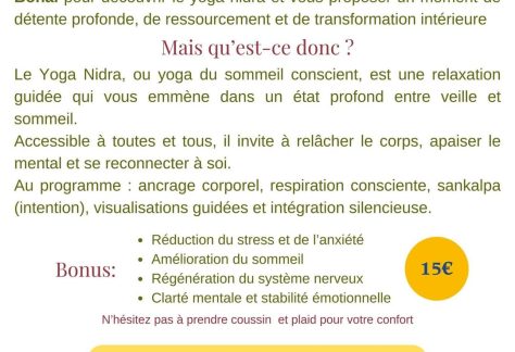 En 2019, j’ai découvert la mantrathérapie auprès de Maitri (Nada), puis en 2020 je me suis immergé dans le Yoga Nidra à Rishikesh, guidé par Pierre Bonasse et Karina Barucha. Cette exploration m’a ouvert à la voie subtile et transformante de la « déesse du sommeil ».